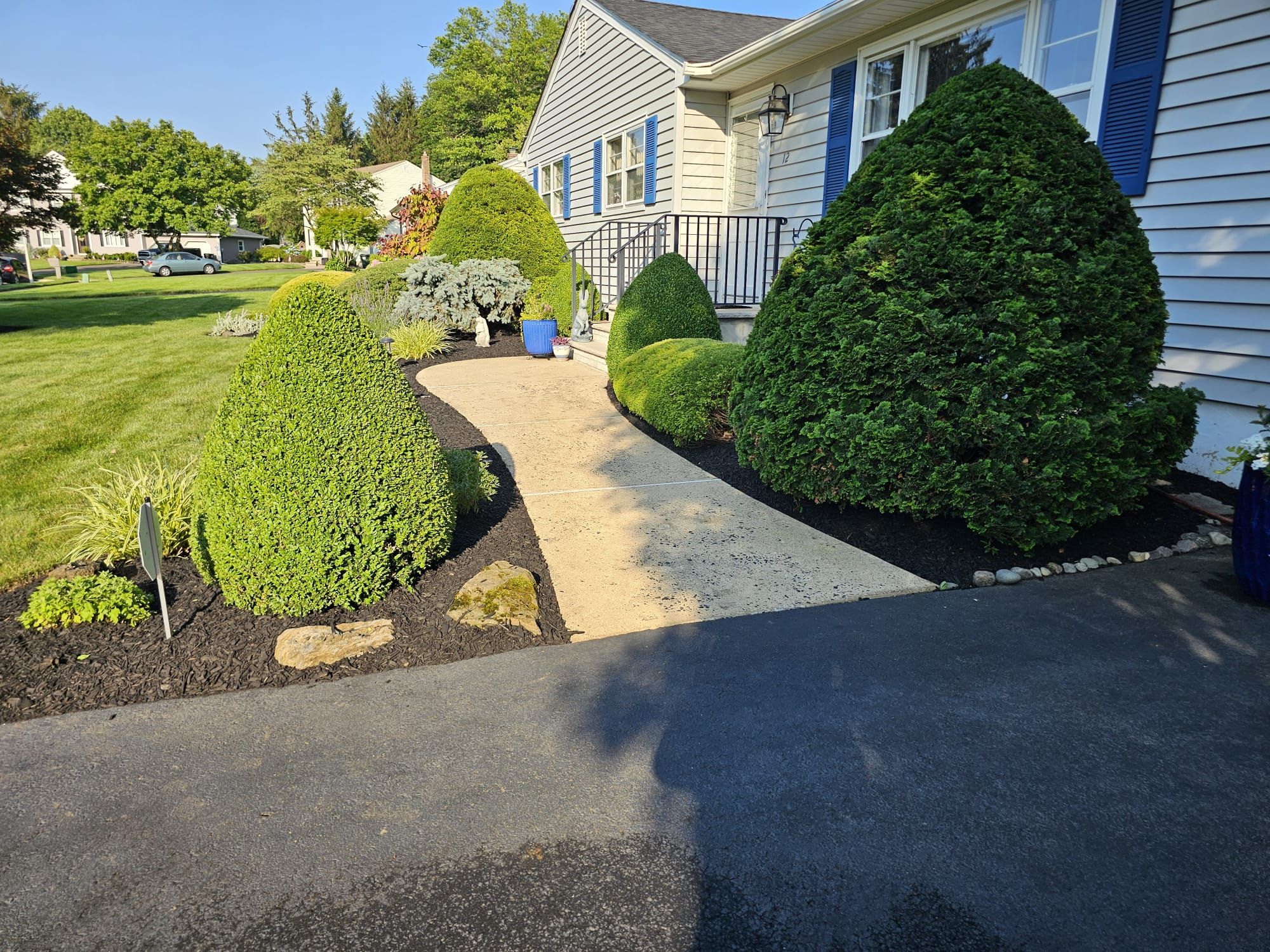 Great attention to detail with mulch and edging. They also power washed our walkway-everything looks clean and sharp.